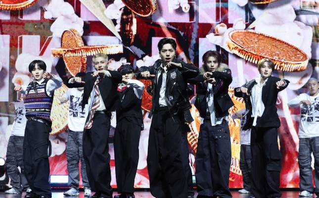 누에라(NouerA)가 9일 오후 서울 광진구 예스24라이브홀에서 열린 세 번째 미니앨범 'POP IT LIKE(팝 잇 라이크)' 발매 기념 쇼케이스에 참석해 타이틀곡 무대를 선보이고 있다.