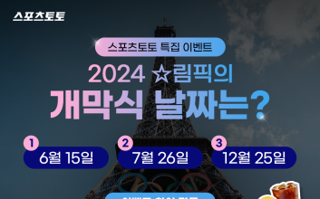‘2024 파리 올림픽 개막 기념 이벤트에 참여하시고 벳머니와 스타벅스 아메리카노 쿠폰을 받아가세요!’국민체육진흥공단이 발행하는 체육진흥투표권 스포츠토토의 수탁사업자 스포츠토토코리아가 공식 인스타그램을 통해 스포츠토토 특집 이벤트를 실시한다고 24일 밝혔다. 이번 이벤트는 프랑스 파리에서 206개국 1만500명이 참가해, 32개 종목의 329개 경기를 선보이는 ‘2024 파리 올림픽’의 개막과 동시에 올림픽에 출전하는 대한민국 선수단을 응원하기 위한 취지로 마련됐다. 스포츠토토는 올림픽 기간동안 공식 인스타그램을 통해 총 3차례에 걸쳐 이벤트를 전개할 예정이다. 이벤트 내용을 살펴보면, 우선 첫번째로 ‘파리올림픽 개막식 날짜 맞히기’ 퀴즈 이벤트가 진행된다. 이벤트에 참여를 원하는 사람은 스포츠토토 공식 인스타그램에 방문해 ‘팔로우’를 진행한 후, 세 가지 보기 중 파리 올림픽 개막일과 일치하는 정답을 댓글로 맞히면 참여가 완료된다. 개막식 날짜 맞히기 이벤트는 25일까지 참여 가능하며 당첨자는 오는 29일(월)에 개별 DM을 통해 안내할 예정이다.두번째, 이벤트는 ‘파리올림픽 신설 종목’ 맞히기 이벤트로 오는 7월 30일(화)부터 진행할 예정이다. 참여방법은 동일하게 스포츠토토 인스타그램에 ‘팔로우’를 진행한 후 주어진 보기에 정답을 맞히면 완료된다.마지막으로, 8월 6일에는 올림픽 축구 결승전 승부 예측 이벤트가 진행될 예정이다. 참여 방식은 위와 동일하며 당첨자 발표 역시 개별 DM을 통해 안내할 예정이다.당첨자에게는 추첨을 통해 베트맨 벳머니 5000원권(20명) 또는 스타벅스 아메리카노 쿠폰(15명)을 지급한다. 스포츠토토코리아 관계자는 “2024 파리올림픽에 대한민국 선수단의 선전을 기원한다”며, “스포츠토토에서 준비한 다양한 이벤트와 함께 올림픽을 더욱 재미있게 관전하기를 희망한다”라고 전했다.한편, 이벤트와 관련한 자세한 사항은 스포츠토토 공식 페이스북과 인스타그램을 통해서도 확인할 수 있다.