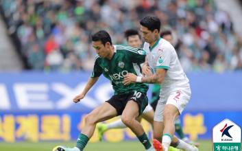 어느 팀도 승리를 양보하지 않았다. K리그1에서 가장 뜨거운 기세를 자랑하는 전북 현대와 대전하나시티즌이 우열을 가리지 못했다.전북과 대전은 6일 오후 2시 전주월드컵경기장에서 열린 하나은행 K리그1 2025 12라운드에서 1-1로 비겼다.앞서 3연승을 질주했던 두 팀 모두 기대했던 4연승이 좌절됐다. 순위표는 변동이 없었다. 대전(승점 27)이 K리그1 12개 팀 중 1위, 전북(승점 22)이 2위를 유지했다.홈팀인 전북으로서는 아쉬움이 진하게 남을 한판이었다. 대전보다 한 경기를 덜 치른 전북은 이겼다면 승점 차를 2로 좁힐 수 있었다. 무엇보다 송민규-콤파뇨-전진우로 이어지는 공격진이 분전하며 상대보다 좋은 기회를 여러 번 만들었지만, 여느 때와 달리 골 운이 따르지 않았다.무승부 기운이 짙어지던 후반 43분에는 ‘승리의 파랑새’인 전진우가 선제골을 만들었는데, 그 기쁨이 오래가지 않았다. 대전이 후반 48분 김인균의 득점으로 승부를 원점으로 되돌렸고, 얼마 지나지 않아 종료 휘슬이 울렸다. 전북 선수들은 머리를 감싸 쥐는 등 아쉬움을 감추지 못했다. 두 팀 모두 기세가 사그라지지 않은 것은 아쉬움 속 수확이다. 전북은 리그 8경기 무패(5승 3무), 대전은 5경기 무패(3승 2무)를 이어가며 최악의 결과는 피했다.불과 사흘 전 경기를 치른 두 팀의 베스트11은 대조적이었다. 조직력을 강조한 거스 포옛 전북 감독은 직전 FC서울전과 동일한 라인업을 내세웠다. 반면 대전은 K리그1 득점 선두인 주민규를 벤치 멤버로 두고, 안양과 데뷔전에서 골 맛을 본 2007년생 공격수 김현오에게 공격을 맡겼다.시즌 초반 선두권 싸움에서 기세를 가져올 한판이었던 만큼, 양 팀은 치열하게 맞붙었다. 전북의 공세가 돋보였지만, 대전도 전반 13분 김현욱이 노 마크 상태에서 슈팅을 때리는 등 절호의 찬스를 만들었다. 김현오도 상대와 몸싸움을 마다하지 않는 등 의욕적인 자세로 뛰었지만, 전반 36분 켈빈과 교체되며 일찍이 경기를 마쳤다. 대전은 후반 14분 김인균과 주민규를 투입하며 전방에 힘을 줬다. 전북도 후반 21분 벤치에 있던 티아고, 에르난데스, 이영재를 한꺼번에 넣으며 총공세를 예고했다.좀체 열리지 않을 것 같던 골문은 후반 43분이 돼서야 열렸다. 전북 박진섭의 롱패스를 티아고가 페널티 박스 안에서 받았고, 이때 뒤따라 들어오던 전진우가 볼을 낚아채 수비수를 제치고 왼발로 골망을 갈랐다. 하지만 후반 48분 임종은의 패스를 받은 김인균이 전북 수비수를 제치고 때린 슈팅이 골키퍼 송범근 가랑이 사이를 통과해 골네트를 흔들었다. 누구도 승전가를 부를 수 없었다.전주=김희웅 기자 2025.05.06 16:12
