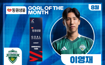 전북 이영재가 2025시즌 8월 K리그 ‘안심을 마시다 동원샘물 이달의 골’ 수상자로 선정됐다.동원F&B가 후원하는 ‘안심을 마시다 동원샘물 이달의 골’은 매월 가장 인상 깊은 득점을 터뜨린 선수에게 수여하는 상이다. 수상자는 K리그 멤버십 애플리케이션 ‘Kick’을 통한 팬 투표로 결정되며, 팬들은 두 명의 후보를 대상으로 기간 내 1일 1회씩, 총 3회 참여할 수 있다.8월 ‘이달의 골’은 K리그1 25~28라운드와 울산의 20라운드 순연 경기를 대상으로 했고, 후보에는 전북 이영재와 대구 세징야가 이름을 올렸다.이영재는 28라운드 울산전 후반 8분 약속된 세트 플레이를 완성하는 그림 같은 중거리 슛을 꽂아 넣었다. 세징야는 25라운드 서울전 전반 34분 하프라인 부근에서 초장거리 슈팅을 성공시키며 상대 골문을 갈랐다.‘Kick’ 팬 투표는 이달 11일(목)부터 13일(토)까지 3일간 진행됐다. 그 결과 이영재가 8,255표(50.2%)를 얻어, 8,195표(49.8%)를 얻은 세징야를 제치고 ‘8월 이달의 골’을 차지했다.수상자 이영재에게는 상금 100만원과 함께 트로피를 준다. 연맹은 올해부터 이달의 골 수상자의 친필 사인이 담긴 레플리카 트로피를 제작해 기부 경매를 진행하고 있다.동원F&B의 먹는샘물 브랜드 동원샘물은 경기도 연천군, 충북 괴산군, 전북 완주군 등의 청정지역 심층 암반수를 취수해 천연 미네랄이 풍부한 친환경 생수다. 동원F&B는 자체 캐릭터인 ‘건강수’를 통해 SNS에서 MZ세대와 소통하고 있으며 공병 경량화, 무라벨 도입 등 친환경 요소를 강화하는 ESG 경영에도 앞장서고 있다.김희웅 기자 2025.09.17 14:45