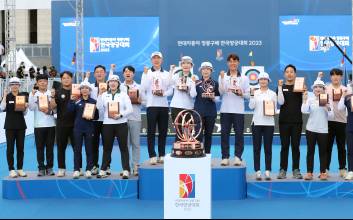 한편 이날 열린 한국양궁대회 결승에선 이우석(코오롱) 정다소미(현대백화점)가 리커브 남·여 챔피언에 올랐다. 이우석은 구대한(청주시청)과의 결승에서 연장 슛아웃까지 가는 대접전 끝에 정상에 올랐다. 정다소미도 유수정을 7-3으로 제압했다. 이우석과 정다소미 각각 우승상금은 1억원이다.이번 대회에 처음 도입된 컴파운드 부문에선 최용희가 김종호(이상 현대제철)를, 오유현(전북도청)이 송윤수(현대모비스)를 각각 꺾고 정상에 올랐다. 앞서 리커브 남자 부문처럼 컴파운드 남자 결승도 슛아웃까지 이어져 팬들의 손에 땀을 쥐게 했다. 컴파운드 부문 우승 상금은 남·여 각각 2000만원씩이다.지난달 31일부터 나흘간 목동 종합운동장과 전쟁기념관 특설경기장에서 열린 이번 대회는 국내 양궁 선수들이 겨루는 국내 최고 권위의 대회로 평가받는다. 지난 2016년 첫 대회를 시작으로 2019년에 이어 올해가 세 번째로 열렸다. 이번 대회 총상금은 리커브 남·여 각각 1억원을 포함해 총 5억 2000만원에 달했다. 국내 선수들이 최대의 기량을 발휘할 수 있는 장을 마련하고, 최고 수준의 상금을 더해 동기부여와 경기력 향상을 도모한다는 취지로 대회가 열리고 있다.