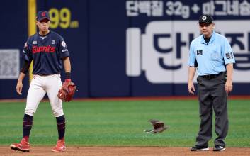 [포토]경기장 난입한 비둘기, 너 어디 팬이니?