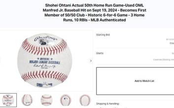 패션 쇼핑몰 사이트를 운영하는 다나카 유스케 사장은 자신의 소셜미디어(SNS)에 '예산 350만 달러(49억원·수수료 포함 420만 달러)를 초과했기 때문에 죄송하다, 난 여기서 포기합니다'라는 글을 올려 눈길을 끌기도 했다. 오타니는 지난달 20일 마이애미 말린스 원정 경기에서 홈런 3개, 도루 2개를 기록하며 대망의 50(홈런)-50(도루) 고지를 정복했다. 이후 홈런과 도루를 추가해 기록을 54홈런-59도루로 시즌을 마쳤는데 기념비적인 50번째 홈런공이 경매에 나오면서 눈길을 끌었다.배중현 기자 bjh1025@edaily.co.kr