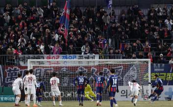 부천FC가 K리그1에 승격했다.이영민 감독이 지휘하는 부천은 8일 수원종합운동장에서 열린 하나은행 K리그 승강 플레이오프(PO) 2025 2차전 원정 경기에서 수원FC를 3-2로 제압했다.앞선 1차전에서 1-0으로 이겼던 부천은 합계 스코어 4-2로 수원FC를 2부로 끌어내리고 2026시즌 1부 리그를 누비게 됐다.올 시즌 K리그2 3위에 오른 부천은 K리그2 PO에서 5위 성남FC와 비기며 구단 역사상 처음으로 승강 PO에 올랐다. 부천은 승강 PO 1, 2차전을 모두 승리로 마무리하며 2008년 창단 이래 최초로 최상위리그에서 뛰게 됐다.올해 정규리그를 K리그1 10위로 마감한 수원FC는 2020년 이후 6년 만에 K리그2에서 경쟁하게 됐다. 승강 PO 1차전 결승골의 주인공인 바사니가 이날 1골 1도움을 올리며 부천의 승격을 이끌었다.바사니는 0-0으로 맞선 전반 14분 상대 미드필드 오른쪽에서 볼을 잡은 뒤 골 지역 오른쪽까지 홀로 몰고 가 오른발 슈팅으로 수원FC 골문을 열었다.부천은 전반 23분 바사니의 패스를 받은 김규민이 골 지역 오른쪽 엔드라인 부근까지 파고들어 오른발로 찬 볼이 수원FC 수문장 황재윤 다리 사이로 빠지며 한 점 더 달아났다.기세를 올린 부천은 후반 시작과 동시에 갈레고까지 골 맛을 보며 사실상 승부에 쐐기를 박았다.수원FC는 후반 37분 최치웅의 득점으로 뒤늦게 추격을 시작했다. 후반 56분 싸박의 페널티킥 골이 나왔지만, 2골 차를 만회하기엔 시간이 부족했다.김희웅 기자 2025.12.08 23:27