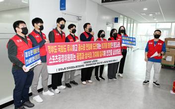 대한체육회 노동조합은 4일 오전 10시 이기흥 현 대한체육회장의 3선임 심의 안건을 심의하는 스포츠공정위원회(이하 공정위) 임원연임 심의 소위원회 회의장 앞에서 이기흥 회장의 퇴진을 요구하고 공정위에 공정과 상식에 입각한 심의를 촉구하는 기습 시위를 실시했다.대한체육회 노동조합은 "이기흥 대한체육회장이 그동안 국회ㆍ정부ㆍ언론 등의 비판과 노동조합의 두 차례 규탄 성명서 발표에도 불구하고, 별다른 입장 표명이나 변화 없이 기어코 대한체육회장 3연임 신청을 스포츠공정위원회에 제출했다"며 "이에, 12일 열리는 공정위 본회의 개최 전 실무사항을 검토하는 임원연임 심의 소위원회가 열리는 회의장 앞에서 기습시위를 실시했다"고 밝혔다. 노조는 이날 기습시위에서 이기흥 회장을 향해 “정부도 국회도 무시하고 꼼수로 연임에 도전하는 이기흥 회장은 물러나라!”는 메시지를, 공정위를 향해서는 “공정과 상식의 가치에 입각해 안건을 심의하라!”를 메시지를 구호로 외쳤다.대한체육회 노동조합은 "이기흥 회장은 현 시각에도 여전히 국회 문화체육관광위원회 참석을 피하고자 각종 꼼수 국외출장 일정을 무리하게 잡는 것으로 확인되고 있으며, 우리 직원들을 향해서는 일말의 변명이나 사과 없이 도피 행보만을 이어가고 있다"고 목소리를 높였다.대한체육회 노동조합은 이에 덧붙여서 "우리 노동조합은 대한체육회 사무처 소속 직원들로 구성된 조직으로, 차기 대한체육회장 선거의 개입ㆍ관여 금지 의무를 엄격히 준수하며 중립을 지켜나갈 것이다. 하지만 이기흥 현 회장의 잘못된 행태에 대해서는 계속해서 조합원들의 목소리를 반영해서 투쟁을 이어나갈 것이며, 그가 잘못을 인정하고 조직 구성원들을 대표해 책임지는 자세로 사과할 때까지 단결ㆍ투쟁 행위를 멈추지 않을 것"이라고 밝혔다.이은경 기자 2024.11.04 14:12