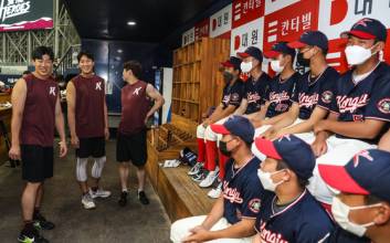 [IS 고척]홍원기 감독, 모교 공주중 야구부 선수단 초대...안우진·김혜성과 '웃음꽃'