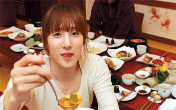 푸짐하게 차려진 한정식 코스. 떡갈비, 삼합, 과메기를 비롯해 색색깔의 반찬들이 한상 가득 차려졌다.맛있는 음식들이 많았지만 김단비(22·신한은행)의 눈은 오로지 김치와 김치찌개에 고정됐다. 당장이라도 음식을 삼켜버릴 듯한 기세로 쳐다보는 통에 말을 걸기가 미안할 정도였다. 김치찌개를 한 술 뜨자 표정이 밝아졌다. 돼지고기와 함께 한 술 크게 떠먹는 모습은 복스럽기까지 했다. "맛있다"를 연발하는 김단비는 어느새 밥 한 공기를 다 비웠다.여자농구 최고 얼짱 중 한 명인 김단비는 "돼지고기와 김치찌개를 즐겨 먹는다"고 했다. 카페에서 와플에 커피를 곁들인 브런치를 즐길 것같은 새침한 외모지만 식성은 딴판이었다. 친구들과 어울려 파스타, 피자를 먹을 나이였지만 "갖춰서 먹는 음식이 아니라 편안한 분위기에서 먹는 한식이 좋다"고 말했다. 체중 관리에도 신경 쓸 나이지만 김단비는 "체력 유지를 위해 많이 먹어야 한다"고 순진하게 미소지었다. 운동 선수 특유의 건강하고 솔직한 기운이 고운 얼굴보다 더 매력적이었다. -김치찌개를 특별히 좋아하는 이유는."김치 없으면 밥을 못 먹는다. 스테이크를 파는 패밀리 레스토랑을 가도 김치를 찾는다. 특별한 이유는 없다. 그냥 김치가 좋고, 한식을 좋아한다. 어릴 때부터 고기도 좋아했다. 특히 김치찌개에는 반드시 돼지고기가 들어가야 한다. 내가 집에 가는 날이면 항상 김치찌개만 찾는다."-고기도 가리지 않고 많이 먹는다고 들었다."돼지고기를 좋아하지만 시즌 중에는 소고기나 닭고기를 주로 먹는다. 돼지고기는 기름기가 많아 몸을 무겁게 한다고 해서 감독님이 먹지 못하게 한다. 그래서 가끔 외박이나 휴가를 얻으면 밖에 나가서 사 먹는다. 최근 휴가 다녀와서도 돼지고기를 먹고 왔다. 고기를 잘 먹어서 그런지 체중도 꽤 나간다. 몸싸움을 하려면 어느 정도 체중을 유지해야 한다. 아마 내 체중을 알면 놀라실 거다. 그러나 몸무게는 비밀이다."몸무게 70kg인 기자가 김단비에게 "나와 비슷한가"라고 체중을 재차 묻자 “대충 그 정도로 생각하면 된다”며 웃었다. -다 잘 먹는 것 같다. 못 먹는 음식도 있나."비린내 나는 생선은 잘 못 먹는다. 과메기도 예전에는 싫어했는데 지방에 사는 언니들이 집에서 보내준 것을 먹어보라고 해서 먹어본 후부터 적응됐다. 그리고 당근·오이 같은 채소를 싫어해서 안 먹는다. 토마토 알르레기도 있다. 초등학교 때 억지로 먹었다가 운동을 며칠 쉬었다. 어릴 때 장염이 자주 걸려 응급실에 자주 갔다. 어머니가 아무 거나 먹이면 탈 날까봐 내가 먹고 싶다는 것만 먹게 했다. 언니들은 내가 편식한다고 뭐라고 하더라. 그래도 운동하면서 식성이 많이 나아진 편이다."-오늘 차려진 한정식 코스는 전부 다 맛있게 먹을 수 있겠다."아, 홍어 삼합도 냄새 때문에 못 먹는다. 이번 시즌 전 일본 프로팀이 전지훈련을 와서 같이 훈련하고 회식을 했다. 한 선수가 나에게 먹어보라며 삼합을 주기에 어쩔 수 없이 먹었다. 냄새가 역하고 씹어 넘기기가 힘들어서 김치를 왕창 집어넣어 그냥 삼켜버렸다."김단비와의 인터뷰는 올스타 브레이크 기간 중인 지난 13일 이뤄졌다. 빡빡한 스케줄 속에서 오랜만에 여유를 찾은 김단비는 맛있는 음식을 먹자 금방 기분이 좋아졌다. 편안한 분위기 속에서 수다를 떨 듯 이런저런 이야기를 이어갔다.-여자농구 얼짱으로 꼽힌다."과찬이다. 나는 한 10위권 정도나 되지 않을까. 내가 보기엔 김연주·최윤아(이상 신한은행) 한채진(KDB생명) 언니가 제일 예쁜 것 같다. 우리 팀에 예쁜 선수들이 많은 것 같다."-코가 유난히 두드러져 보이는데 성형수술을 했나. 예뻐지고 싶어서 한 건가."부상 때문에 2009-2010 시즌을 마친 후 수술했다. 그 전부터 이미 다쳐서 조금 휜 상태였다. 그런데 운동하면서 계속 팔꿈치에 맞으니 더 휘게 되더라. 수술 결과는 만족스럽긴 한데 너무 코가 커진 것 같긴 하다. 실리콘이 들어갔기 때문에 예전보다 더 튼튼해졌다고 하더라(웃음). 올해 팬사인회를 하는데 한 팬이 '언제부터 그렇게 예뻤냐'고 물어서 ‘코 수술하고나서부터 예뻐졌다’고 말한 적은 있다."-키는 언제 그렇게 컸나."초등학교 5학년 때 160cm 정도였는데 1년 사이에 168cm까지 자랐다. 그 후로는 10cm 정도 밖에 안 컸다. 농구를 처음 시작할 때부터 센터를 봤는데 키가 커지지 않아 나중에는 센터를 포기했다."-키 크려고 따로 챙겨먹은 음식이 있다면."나는 어릴 때 키 크는 게 창피했다. 우유를 많이 먹어야 하는데 일부러 안 먹었다. 엄마는 키가 더 커야 한다고 일찍 재우기도 했다. 그런데 나는 일부러 허리를 숙이고 다녔다. 지금은 키가 더 크고 싶다. 한의원에서는 180cm 넘게 큰다고 했었는데 아쉽다. 고등학교 2학년 이후로 현재 키를 유지하고 있다."안산=오명철 기자▶[Who+ ①] ‘농구얼짱’ 김단비, 코 성형사실 깜짝 고백▶[Who+ ②] 김단비, 신한은행 팀 내 ‘식신’ 등극▶[Who+ ③] 김단비, 반 대표 출신 기자와 1대1 대결..결과는? 2012.01.25 07:00