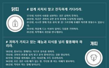 자료제공 : 점신 물병자리 (1.20 ~ 2.18) 새로운 일을 시작하기에 적합한 날이다. 평소에 생각만 갖고 시도해보지 못했던 일, 전혀 생각에 없던 일들도 의외로 잘 풀릴 수 있다. 핸드폰, 컴퓨터 등 이것저것 만져보다 의외로 괜찮은 소득을 건질 수도 있겠다. 손에 잡히는 이것저것에 호기심을 가져보자. 오늘은 손재주가 비상하게 좋은날이다. 돈을 쓰는 것보다 끌어안고 있어야 좋은 날이지만 몸 컨디션이 별로다 싶으면 미리 챙겨두자. 나중에 목돈 든다. 행운을 가져다 주는 것 : 핸드폰 액정 클리너 물고기자리 (2.19 ~ 3.20) 발 빠른 토끼를 이긴 것은 거북이! 근성을 발휘하기 딱 좋은 날이다. 새로운 것에 관심을 갖는 것도 좋지만 이미 벌려놓은 일, 마음먹었던 일을 끈기있게 마무리 하는 것이 우선이다. 질질 끌고 있던 과목 따위 마음 굳게먹고 마스터 해 버리자. 시험을 앞두고 있다면 끝까지 반복 정리하는 것이 최상이다. 애정전선에 먹구름 징조가 보인다. 천둥번개 치기 전에 해결책을 모색하자. 행운을 가져다 주는 것 : 감자칩 양자리 (3.21 ~ 4.19) 외롭다고 느끼고 있는 당신! 필요 이상으로 자신의 마음을 숨기는 것은 왕따의 지름길! 오늘은 자신이 먼저 마음을 열고 편하게 다가가는 날로 삼자. 무조건 허허실실작전을 펼치는 것이 아니라 자신의 의사표현을 확실히 하는 것이 적당한 존재감을 알릴 수 있다. 욕구불만에 의한 과식은 탈이 나기 쉬우니 음식조절하자. 재물운도 적당한 날이다. 꿔준 돈 받을 수 있겠다. 행운을 가져다 주는 것 : 핸드폰 황소자리 (4.20 ~ 5.20) 일이냐, 사랑이냐, 아니면 사람이냐. 그것이 문제로다! 늘 고민하던 일이 오늘 말끔히 해결될 날이다. 삼각관계로 고민하던 당신, 선배의 시샘에 고민하던 당신 오늘은 그간의 오해들이 해결되는 날이니 훨훨 날아갈 것만 같다. 이럴 때 관계정립을 더 신경써야 할 것. 내 것을 조금 버린다는 생각으로 상대방을 대한다면 답이 쉽게 나올 것 같다. 엉뚱한 행동으로 작은 활력을 되찾아보는 것도 오늘을 즐겁게 보낼 수 있는 방법이겠다. 행운을 가져다 주는 것 : 클럽 쌍둥이자리 (5.21 ~ 6.21) 남의 연애 사에 감 나라 대추나라 하지 말자. 평소엔 당신의 조언들이 먹혔을지 모르나 오늘만은 다르다. 오늘 당신이 하는 조언들은 오히려 화가 되어서 돌아올 것이다. 몸 역시 말을 안 듣는 날이다. 평소 10킬로미터를 거뜬히 뛰었는지 모르겠으나 오늘은 5킬로 걷기도 벅차다. 당신 다리가 천근이요. 만근처럼 느껴지니. 이게 웬일인가. 컨디션 조절에 실패하는 순간! 병원 신세를 지어야 할지 모르니 절대 주의 할 것. 뛰는 것보다는 걷는 게 당신 건강에 좋다. 행운을 가져다 주는 것 : 산책로 게자리 (6.22 ~ 7.22) 당신의 독창성이 드디어 인정을 받는 날 "남자는 왜 레깅스를 입으면 안~되나요?" 입을 수 있다. 세상에 안되는 게 어디 있니? 다만 다른 사람들의 시선이 따가울 뿐.^^; 하고자 하는 일이 안정되어 잘 이루어 질 것이다. 끝까지 쉬지 않고 다다다다다닥~! 당신의 노력이 빛을 발하는 날~! 이런 때일수록 주변 사람들에게도 잘하자. 노인 분들 어린 아이 할 것 없이 잘해주자. 단, 레깅스 스타일은 강조하지 말자. 행운을 가져다 주는 것 : 비빔밥 사자자리 (7.23 ~ 8.22) 매일 집을 나서기 위해 타는 엘리베이터. 그리고 매일 만나는 사람들. 1층까지 가는 시간이 왜 이리도 길까. 오늘은 당신이 먼저인사를 건네 보는 건 어떨까요? 처음엔 무뚝뚝할지 모르나, 후에 당신보다 먼저 인사할 것입니다. 오늘은 당신이 주변사람들에게 먼저 다가가는 날. 다른 날 보다 더 많은 것을 얻을 수 있을 거예요. 사랑으로 시작하는 오늘 하루는 당신의 마음속에 오래오래 기억될 것입니다. 그렇죠? 행운을 가져다 주는 것 : 교통카드 처녀자리 (8.23 ~ 9.23) 누울 자리를 보고 발을 뻗자. 도움을 받으려는 곳도 적당한 곳, 도움을 베풀만한 곳도 적당한 곳에. 올라가지도 못할 나무는 신경쓰지 말고 그냥 지나쳐버리자. 단, 이성문제에 있어서는 얘기가 180도 틀려진다. 열 번 백번 두드리면 안열리는 문 없겠고, 열 번 백번 찍으면 안 찍히는 나무 없겠으니 도전하면 얻게 될 것이다. 두드리고 추진하되 다른 사람에게 피해만 주지 않으면 된다. 행운을 가져다 주는 것 : 연필깎이 천칭자리 (9.24 ~ 10.22) 열심히 일한 당신, (아주 잠시만) 떠나라~ 억지로 일에 매달리는 것보다 잠시 머리를 식히는 것이 도움이 되는 날이다. 하지만 하루종일 바쁜 일들이 마구마구 생기니 맘편히 쉴 여유는 없을 것 같다. 적당히 시간을 쪼개 머리를 조이고 푸는 시간을 분배해야 차곡차곡 스트레스가 쌓이는 것을 줄일 수 있다. 다른 사람 다 하는데 왜 나는 못해? 라는 마음가짐이 오늘 당신에겐 도움이 될 것 같다. 행운을 가져다 주는 것 : 샌드위치 전갈자리 (10.23 ~ 11.22) 깜빡! 깜빡! 오늘은 건망증 때문에 실수가 있을 수 있는 날이니 조심하자. 우산, 핸드폰, 지갑 등 손에 든 것은 물론, 기념일, 약속 기타 등등 어처구니없는 실수 때문에 망신당하지 않도록 정신을 차릴 것. 새로운 사람들과 만남의 자리가 있을 수 있는 날. 순간의 기분대로 표현하는 것이 와전되어 뒤탈이 생길 수 있으니 최대한 상대방을 배려