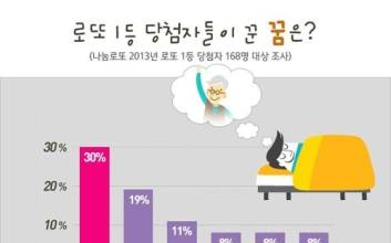 '로또1등 당첨자' 84%가 특별한 꿈 꾸고 당첨, 무슨 꿈을 꾸었나?로또 1등 당첨자들이 꾼 꿈 중 가장 많은 비율을 차지한 것이 '조상꿈'이라는 조사 결과가 나왔다.나눔로또가 2013년 한 해 로또 1등 당첨자 168명을 대상으로 설문조사한 결과 로또 당첨 전에 꿈을 꿨다는 응답자 중 30%가 조상꿈을 꿨다고 전했다. 이어 동물꿈 19%, 대통령꿈 11%, 물이나 불꿈 8%, 재물꿈 8%, 숫자꿈 8%로 순이다.추석을 일주일 앞두고 로또 1등에 당첨된 손 모씨는 꿈에 돌아가신 아버지가 나타나 로또 구매를 더 집중적으로 했다고 밝혔다. 손 씨는 모 로또복권 커뮤니티와 인터뷰에서 "자영업에 종사하는 가장이다. 요즘 사업이 잘 안 풀리면서 대출을 받아 어렵게 생활하던 차에 로또 1등에 당첨됐다. 꿈에 돌아가신 아버지가 자꾸만 나타나 꾸준히 로또를 구매했는데 아들 고생 좀 그만 하라고 복을 내려주신 것 같다"며 당첨소감을 전했다.추석선물로 거액의 현금을 선물로 받게 된 손 씨. 그는 매주 로또를 하며 "5등이라도 당첨되면 즐겁고, 낙첨 되더라도 내가 구매한 돈의 50%가 어려운 이웃에게 돌아가기 때문에 편안한 마음을 가졌다"며 로또를 즐겼다고 밝혔다.손 씨의 당첨사연이 공개된 해당 커뮤니티 관계자는 "추석기간에 고향방문, 가족여행 등 바쁜 일정으로 로또 구매를 하지 못해 안타깝게 당첨의 행운을 놓치는 경우가 발생하기도 한다. 지난 추석시즌 통계를 보면 1등 당첨금이 40억원을 웃도는 등 고액의 당첨금이 나오기도 해 평소보다 로또 구매에 관심이 높아진다"고 전했다.