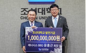 제너시스BBQ 그룹이 조선대학교에 발전기금 10억 원을 기부한다.제너시스BBQ 그룹은 지난 7일 오후 조선대학교 본관 ‘청출어룸’에서 발전기금 전달식을 열고 대학의 교육 경쟁력 강화와 미래 인재 육성을 위한 발전기금 10억원을 전달했다고 12일 밝혔다.이날 전달식에는 윤홍근 회장을 비롯해 윤경주 부회장, 박지만 사장 등 제너시스BBQ 그룹의 주요 임원진이 자리를 함께했다. 조선대학교 측에서는 김이수 이사장과 김춘성 총장 등 주요 보직자들이 참석했다.이날 윤홍근 회장은 인사말을 통해 “기업이 성장할수록 그 성과를 미래 세대에게 어떻게 환원할 것인지 고민하는 것이 제게 주어진 책무라고 생각한다”고 이번 발전기금 의 취지를 설명했다.이어 “나에게 학창 시절 장학금은 단순한 금전적 지원을 넘어 미래를 향한 도전의 원동력이었다”고 회상하며 “당시 받은 도움을 사회에 되돌려주고, 글로벌 무대에서 활약할 미래 우수 인재들이 성장할 수 있는 토대를 마련하고자 이번 기부를 결정했다”고 밝혔다.윤 회장은 청소년 시절 가세가 기울며 대학진학을 포기할 위기에 놓였으나, 조선대학교 성적장학생으로 선발돼 학업을 이어간 인연을 갖고 있다. 윤 회장은 또한 “이번 기부가 변화와 혁신을 통해 더 큰 미래로 나아가는 조선대학교의 든든한 자양분이 되기를 바란다”고 덧붙였다.김이수 이사장은 “윤홍근 회장님의 경영 철학과 2030년을 향한 비전이 개교 80주년을 맞은 조선대학교의 올해를 더욱 뜻깊게 만들고 있다”며, “이러한 도전과 나눔이 대학 발전과 조선대인의 자긍심으로 이어지기를 기대한다”고 전했다.김춘성 총장은 “회장님의 굳건함은 우리 학생들에게 자긍심과 자신감이 되고, 조선대학교가 글로벌 경쟁력을 갖춘 대학으로 도약하는 데 중요한 동력이 될 것”이라고 화답했다.이번 발전기금은 조선대학교의 교육·연구 인프라 확충과 교육환경 개선을 비롯해, 글로벌 역량을 갖춘 인재 양성을 위한 다양한 교육 프로그램과 후학 양성 사업에 활용될 예정이다.권지예 기자 kwonjiye@edaily.co.kr 2026.01.13 17:06