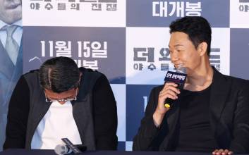 김봉한 감독, 박성웅이 30일 오후 서울 용산구 CGV용산아이파크몰에서 열린 영화 ‘더 와일드: 야수들의 전쟁’ 언론시사회 및 기자간담회에 참석해 취재진과의 질의응답 시간을 갖고 있다.