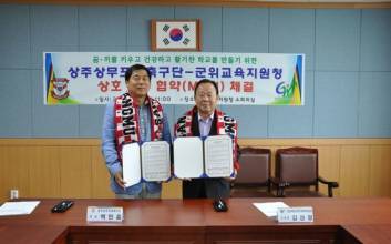 상주 상무 프로 축구단(대표이사 백만흠)이 지난 4일 오전 11시 군위교육지원청 2층 소회의실에서 군위교육지원청과 업무협약(MOU)을 체결했다. 이날 업무협약식에는 백만흠 상주 대표이사를 비롯한 사무국 관계자와 군위교육지원청 김성렬 교육장 및 임직원이 참석해 자리를 빛냈다. 양 기관은 군위지역 청소년들의 건전한 스포츠 문화 확산과 활기찬 학교분위기 조성을 위해 상호 협력키로 했다. 이번 협약식을 통해 상주는 관내 초·중학교를 대상으로 배식봉사, 축구클리닉 등 다양한 프로그램을 실시한다. 군위교육지원청은 건전한 여가활동 증진을 위해 교육지원청 및 관내 학교에 상주 홈경기 관람을 적극 장려키로 했다. 백만흠 상주 대표이사는 “군위교육지원청과 이렇게 MOU를 체결하게 되어 뜻깊게 생각한다”며 “이번 협약을 통해 구단이 교육발전에 이바지 할 수 있도록 적극 협력하겠다”고 전했다. 김성렬 군위교육지원청 교육장은 “상주의 자랑, 상주상무프로축구단과 함께하게 되어 영광스럽게 생각한다”며 “교육과 프로스포츠가 하나 되어 큰 발자국을 남길 수 있도록 노력하겠다”고 화답했다.김희선 기자 kim.heeseon@joins.com 2017.07.05 13:34
