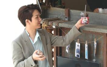 가수 김수찬이 27일 오후 서울 여의도 KBS 본관에서 열린 KBS 예능프로그램 ‘편스토랑’ 녹화 중 팬들이 보낸 커피차 앞으로 나와 포토타임을 갖고 있다.박세완 기자 park.sewan@jtbc.co.kr / 2020.04.27/ 2020.04.27 15:40