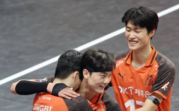 기세가 오른 김건우는 2세트도 활약을 이어갔다. 5-6, 6-8로 지고 있는 상황에서 우리카드 추격 기세를 이어가는 득점을 해냈다. 13-15에서는 상대 블로커 손을 겨냥해 터치아웃 득점을 만들어내며 재치 있는 공격을 보여줬다. 15-16에서는 이강원의 오픈 공격을 블로킹하며 포효했다. 젊은 선수의 활약에 선배들도 부응했다. 입단 6년 차 김웅비가 고비마다 득점을 지원했다. '국내 에이스' 신호진도 22-21에서 3인 블로커 벽을 뚫고 공격을 성공했다. OK저축은행은 24-24에서 김건우가 퀵오픈 하며 세트 포인트를 만든 뒤 신호진이 알리의 공격을 블로킹하며 2세트까지 잡았다. 두 세트만에 15점을 올리며 개인 최다 득점을 경신한 김건우는 3세트도 돋보였다. 오픈·퀵오픈·백어택 공격을 두루 시도해 득점을 올렸다. 17-16에서는 신호진이 몸을 날려 받은 공을 바로 상대 코트 왼쪽 엔드라인 근처로 밀어 넣어 득점을 올렸다. 이 경기 20점째. 하지만 OK저축은행은 3세트 막판 집중력이 떨어지며 23-25로 패했다. 김건우는 다시 해결사로 나섰다. 4세트 3연속 공격 성공에 서브에이스까지 해내며 팀이 올린 첫 4점을 모두 책임졌다. 다른 선수들도 체력이 떨어진 상황에서도 투지를 발휘하며 박빙 승부를 이끌었다. 결국 연패 탈출을 해냈다. 20-20 동점에서 김지한의 퀵오픈을 박창성이 블로킹 해냈고, 수비 성공 뒤 신호진이 대각선 오픈 공격을 성공하며 2점 차로 달아났다. 상대 서브 범실로 23-20을 만든 OK저축은행은 이후 다시 동점을 허용하며 2세트에 이어 두 번째 듀스 승부를 치러야 했지만, 27-27에서 김건우, 28-27에서 신호진이 연속 득점하며 긴 연패를 끊어냈다. 안산=안희수 기자 anheesoo@edaily.co.kr