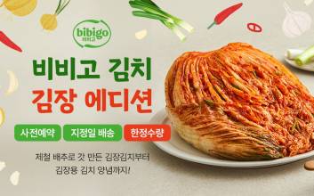 CJ제일제당은 김장철을 맞아 다음 달 6일까지 '비비고 김장김치 사전예약' 기획전을 한다고 25일 밝혔다.대상 제품은 '비비고 제철배추 포기배추 김치'(10㎏)와 양념소 제품인 '비비고 포기김치 양념'(5㎏) 두 가지다. 가격은 상시 판매 중인 '비비고 포기배추 김치' 제품보다 저렴한 수준으로 책정됐다.CJ제일제당 관계자는 "김장에 부담을 느끼는 소비자의 부담을 덜어드리기 위해 기획전을 준비했다"고 밝혔다.CJ제일제당은 신선한 김치를 배송하기 위해 고객이 지정한 날에 생산해 바로 다음 날 배송을 완료할 계획이다. 김치 제품은 다음 달 13일∼22일 사이에, 양념소 제품은 다음 달 7일∼22일 사이에 배송 날짜를 지정할 수 있다.안민구 기자 amg9@edaily.co.kr