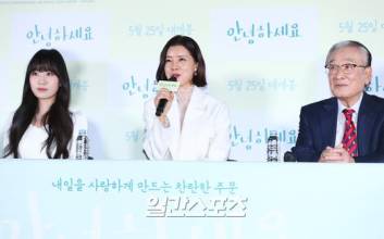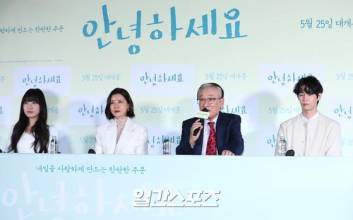 배우 이순재와 김환희가 세대를 뛰어 넘은 우정으로 따뜻한 힐링 무비를 완성했다. 이순재와 김환희는 호스피스 병동을 배경으로 벌어지는 이야기를 담은 영화 '안녕하세요(차봉주 감독)'로 첫 연기 호흡을 맞추게 됐다. 67살의 나이차가 무색할만큼 따뜻한 케미를 선사한다. 두 배우를 비롯해 차봉주 감독과 출연 배우들은 19일 오후 서울 용산구 CGV용산아이파크몰에서 진행된 시사회 및 간담회를 통해 영화에 대한 이야기를 나눴다. 25일 개봉하는 '안녕하세요'는 세상에 혼자 남겨져 의지할 곳 없는 열아홉 수미가 죽는 법을 알려주겠다는 호스피스 병동 수간호사 서진을 만나 세상의 온기를 배워가는 애틋한 성장통을 그린 휴먼 드라마다. 이번 작품으로 입봉한 차봉주 감독은 "영화 현장에서 16~17년 됐는데 언젠가 데뷔를 할 때 생각해서 글작업을 했다. 행복이 주제였다. 어렸을 때 영화를 보면서 많은 행복을 느끼고, 좋은 기억으로 남아있다. 영화 감독이 되면 행복이란 이야기를 하고 싶었다. 내 나름대로의 기준을 내린 건, 내가 마지막 순간을 마주 했을 때 웃을 수 있으면 좋을 거 같았다"고 말했다. 이어 "호스피스 병동을 보는데 유독 한분이 밝으셨다. 그 안에서 밝은 모습 보는데 나도 모르게 눈물 흘리면서 삶과 죽음이라는 가고 있는 감정들이 많이 바뀌게 된 상태였는데, 이런 감정을 수미라는 인물을 통해 알려드리고 싶었다. 정답은 없지만 생각해볼 문제라고 생각한다"고 설명했다. 극 중 이순재는 죽음을 앞둔 노인을, 김환희는 이런 환자들을 보며 삶과 죽음에 대해 다시 생각하는 소녀로 분했다. 김환희는 "시놉시스 받고 보게 되면서 무지에 부끄럽지만 호스피스 병동에 대해 정확히는 몰랐다. 이 작품 읽고 나서 어떤지에 대해 많이 조사했었다"며 "이런 주제를 가지고 쓰임에 있어서 하고 싶다는 생각이 들었다. 수미라는 캐릭터가 감정선이 밑바닥부터 시작해서 마지막엔 높이 올라가서 감정 폭이 넓은 아이다. 도전 욕구가 생기는 캐릭터를 좋아한다"고 출연 이유를 밝혔다. 김환희는 이순재, 유선, 송재림 등 다수의 선배들과 함께 작업했다. 이어서 그는 "이 작품은 스무살인 지난해 5월달 쯤 촬영하게 됐다. 스무살 성인이 됐다는 연기 부담감과 더불어 어떤 극을 이끌어 나간다는 부담이 굉장히 컸다. 작품을 이끌어 나갈 때 외롭다는 느낌도 받았는데 이 작품에는 너무나 멋진 배우들이 계셔서 이 분들에게 의지를 하고 싶은 생각도 들었던 거 같다"며 "연기적으로 도움도 받고 싶고, 위로도 받고 싶고. 그런 느낌으로 이 작품에 참여하지 않았나 싶다. 너무나 멋진 배우 분들이라 내가 조금 삐긋해도 잘 잡아주셔서 좀 더 즐기면서 촬영할 수 있었다. 선배님들께서 해주시는 칭찬 하나하나가 칭찬에 춤을 추는 고래 같은 느낌이라 성장할 수 있지 않았나 싶다. 칭찬에 힘입어서 더 호흡을 잘 맞출 수 있었다"고 말했다. 그 중에서도 이순재, 유선에 대한 애틋함을 드러냈다. 김환희는 "특히 유선, 이순재 선생님과 많이 만났는데 내 연기에 대한 피드백 받고 싶어 하는데 촬영하시면서 연기에 대한 피드백과 칭찬 해주셔서 좋은 연기로 관객 분들을 만날 수 있지 않았나 싶다. 영광스러운 현장이었다"고 덧붙였다. 이순재도 "배우는 출연할 수 있음이 축복이다. 나도 대학 때부터 영화보고 이쪽에 관심을 가졌다. 이번에는 젊은 배우들과 함께 했다. 김환희 배우가 너무 잘해줬다. 그래서 작품이 더 빛난 거 같다"며 "그 사이에 세상이 달라졌다. 세계로 뻗어 나간다. 윤여정, 오영수도 그러하지 않았나. 나도 '꼴뚜기 게임', '문어 게임'에라도 끼고 싶다. 오영수, 윤여정 뿐 아니라. 각 분야 젊은이들 추켜 세워주셔서 세계 도전할 수 있게 믿어주셨으면 좋겠다. 제2의 오영수, 윤여정도 충분히 가능하다"고 여전한 연기 열정을 내비쳤다. 유선은 '안녕하세요'를 '무공해 영화'라고 정의했다. 그는 "가정의 달인데 3대가 함께 와서 봐도 좋을 영화다. 살아가면서 나 역시도 그렇고 수미처럼 한 때 힘들었던 절망을 경험한다. 그 땐 깊은 어둠 속으로 들어가서 한줄기 희망과 빛조차 보이지 않을 때가 있는데 도와줄 누군가도 없고, 이 끝은 없을거 같고. 그 경험을 누군가 해봤을텐데 그 순간을 못견디고 안타까운 선택을 하는 사람들이 있다. 그런 경우가 많이 생각나더라. 지나고 보면 한순간이고, 내가 살아온 긴 과정일 뿐인데 그 안에 있을땐 아무것도 안보이고 안들리고 절망만 느껴진다"며 "내가 생을 마감하려는 이 순간, 누구에게는 절실한 하루구나 싶기도 하다. '안녕하세요' 영화가 살아가는 하루하루에 대한 의미와 가치를 담고 있는 거 같다. 편하게 영화 보러 오셨다가 삶의 소중함을 느끼셨으면 좋겠다"고 당부했다. 송재림은 "우리 영화는 마치 울고 싶을 때 뺨 때려주는 느낌이었다. 자극적이지 않고 쉴 수 있는 시나리오라 하게됐다"며 "이 영화를 하고난 뒤 요즘따라 현재란 단어에 대해 생각하게 되더라. 현재는 선물이라 들었는데 그 의미를 다시금 생각해 볼 수 있었다"고 이야기했다. 마지막으로 차봉주 감독은 "이 영화를 찍으면서 진짜 행복했다. 이 행복감을 관객분들에게도 전해드릴 수 있었으