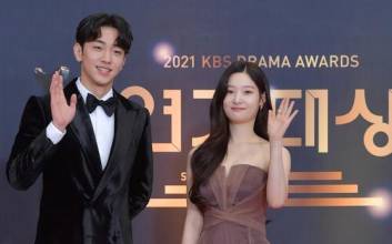 배우 남윤수와 정채연이 31일 밤 서울 여의도 KBS에서 열린 '2021 KBS 연기대상' 레드카펫에 참석해 포즈를 취하고 있다. 김진경 기자 kim.jinkyung@joongang.co,kr/2021.12.31/ / 2021.12.31 19:33