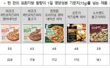 피코크·노브랜드 '냉동피자' 한 판에 포화지방 1일 기준치 넘어