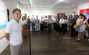 이날 재단 이사장이자 설립자인 곽재선 KG그룹 회장은 “한동안 미술계가 어려웠을 때 온 유럽에 있는 무명의 작가들이 모여 파리에서 작품활동을 했는데 그 사람들을 ‘파리파’라 지칭한다고 한다. 여기는 ‘KBS파’가 아닐까 한다”며 현장에 참여한 32명의 작가들을 지칭했다. 곽 회장은 이어 “여러분의 작품이 집에만 소장된다면 하나의 종이와 페인트에 지나지 않지만, 많은 사람들이 그림을 보고 기쁨을 누린다면 그게 작품이 아닐까 생각한다”며 “많은 사람들이 작품을 통해 힐링되고, 작품으로서 재탄생되는 계기가 됐으면 좋겠다”고 당부했다.이어 32명의 작가 중 이사라 작가와 이상원 작가가 대표 인사를 전했다. ‘노머니 노아트’ 1회에 출연해 ‘원더랜드’ 작품을 전시한 이사라 작가는 방송 전 겪었던 고민에 대해 떠올리며 “모든 작가들이 출연에 앞서 걱정이 많았을 거다. ‘라이브 드로잉은 잘할 수 있을까’ ‘내가 살아남을 수 있을까’라는 생각부터 어마어마한 스트레스가 있었다”고 말했다. 그러면서도 이사라 작가는 ‘노머니 노아트’에 출연한 모든 작가에게 응원의 메시지를 전하며 “여기에 나온 작가들은 죽을 때까지 작가로 살아남을 것”이라며 “열심히 한 근성이 있고, 이러한 근성으로 버틴다면 모든 걸 헤쳐나갈 수 있다. 32명의 작가들 모두 포기하지 않고 끝까지 열심히 작업하길 바란다”고 강조했다.