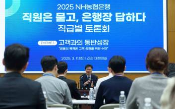NH농협은행은 지난 11일부터 21일까지 은행 본사에서 '함께하는 변화, 선도하는 미래'를 위한 직급별 간담회를 총 5회에 걸쳐 개최했다고 24일 밝혔다.이번 간담회에는 중앙본부 임직원 300여명이 참석했으며, 은행장과 함께‘금융 패러다임 변화에 대응하기 위한 농협은행의 발전방향’을 주제로 자유롭게 의견을 나누었다.간담회는 고객과의 동반성장, 금융의 품격 높이기, 원리원칙 재정립, 성과주의, 고객가치 등 은행장이 취임사에서 강조한 핵심 주제 5가지를 직급별로 나누어 문답식으로 진행됐다.강태영 은행장은 “이번 간담회를 통해 임직원들이 농협은행의 ‘품격’을 높이기 위한 방안을 함께 고민하는 계기가 되었기를 바란다”며, “직원들과 지속적으로 소통하며 고객중심과 원리원칙 준수 등에 대한 공감대를 확대해 나가겠다”고 밝혔다. 권지예 기자 kwonjiye@edaily.co.kr