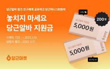 당근은 구인·구직 서비스 '당근알바'가 추석 명절을 앞두고 오는 18일까지 동네 가게들의 단기 일자리와 구직자를 연결하고 '추석 특집 단기 알바' 이벤트를 연다고 4일 밝혔다.이벤트 기간 당근알바에서 첫 알바생을 구한 구인자 1명에게는 인건비 지원금 100만원을, 10명에게는 '온브릭스 과일바구니'를 선물한다.명절 장사 덕담과 이웃 사장님에게 이벤트 페이지를 공유한 10명에게는 '홍삼정 에브리타임'을 준다.또 추석 알바에 지원한 구직자 중 당근알바 이용이 처음인 39명을 추첨해 5000원부터 100만원(1명)까지 알바 지원금을 제공한다.이 외에도 추첨으로 신라호텔 숙박권(1명), 설로인 한우세트(5명), 배민 상품권(10명)을 증정한다. 명절 소원을 담아 이벤트 페이지를 공유한 5명에게는 '오쏘몰 이뮨 7일분'을 지급한다.백병한 당근알바팀장은 "추석 명절 특수를 앞두고 빠르게 알바생을 구해야 하는 자영업자들과 연휴 기간 집 주변에서 단기 일자리를 찾는 사람들에게 당근알바의 추석 알바는 좋은 선택지가 될 것"이라며 "이번 추석에도 일자리 연결이 필요한 동네 곳곳에 당근알바가 도움이 되길 바란다"고 말했다.정길준 기자 kjkj@edaily.co.kr
