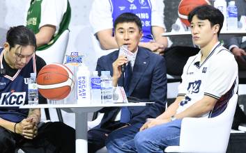 ‘슈퍼팀 2기’ 프로농구 부산 KCC가 개막 미디어데이부터 통합 우승을 목표로 내걸었다. ‘디펜딩 챔피언’ 창원 LG도 여전히 대권을 노린다.29일 서울 용산구 블루스퀘어에서 프로농구 미디어데이가 열렸다. 10개 구단 감독과 대표 선수가 마이크를 잡고 출사표를 올렸다.에어컨 리그부터 이날까지 이어진 화두는 단연 ‘슈퍼팀 2기’ 부산 KCC다. 2년 전 챔피언 KCC는 지난해 부상으로 무너져 9위로 추락해 플레이오프 문턱도 밟지 못했다. 새 시즌 변화는 크다. 코치로 활약하던 ‘컴퓨터 가드’ 이상민 감독이 지휘봉을 잡았다. 대들보 이승현(울산 현대모비스)이 떠났지만, 국가대표 출신 가드 허훈을 품으며 초호화 라인업을 더욱 강화했다. 10개 구단 중 4개 구단이 KCC를 강력한 우승 후보로 꼽았다. 이날 마이크를 잡은 이상민 감독은 “목표는 크게 잡았다. 목표는 통합 우승”이라고 약속했다. 디펜딩 챔피언 LG는 KCC의 강력한 대항마다. 이들은 지난 시즌 유기상-양준석이라는 젊은 백코트를 구축해 창단 첫 챔피언결정전 우승을 거뒀다. 비시즌 특별한 전력 유출도 없었고, 시즌 중엔 또 다른 국가대표 포워드 양홍석까지 합류한다. LG 역시 4개 구단으로부터 우승 후보로 꼽혔다. 함께 우승 후보로 꼽힌 건 수원 KT와 대구 한국가스공사다. LG 유기상은 “KT의 국내 뎁스가 너무 좋다. 또 몰래 KT 유튜브를 보는데, 영상 속 선수들의 활약이 너무 뛰어나다”라고 재치 있게 답했다. KCC 허웅은 “라건아 선수가 KBL에서 5차례나 우승에 성공했다. 라건아 선수를 보유한 한국가스공사가 우승할 거 같다”라고 말했다.지난 시즌 정규리그 우승, 챔프전 준우승팀 SK의 전희철 감독은 이색적인 출사표로 현장을 웃게 했다. 전 감독은 “SK를 두고 항상 ‘뻔(Fun)한’ 농구라고 말하더라. 올 시즌엔 팀의 약점이었던 스페이싱과 외곽을 채워줄 선수를 품었다. 뻔하지만, 재미와 외곽이 터지는 ‘펑펑한’ 농구를 보여줄 거”라고 말했다.한편 KCC 외에도 새로운 사령탑 체제로 맞이하는 구단이 4개나 있다. 베테랑 유도훈 안양 정관장 감독과 문경은 수원 KT 감독이 다시 코트 위로 복귀했다. 전력분석원 출신 손창환 고양 소노 감독, 양동근 울산 현대모비스 감독은 생애 처음으로 지도자로 나선다. 유니폼을 바꿔입은 김선형(KT)의 새출발도 주목할 만하다. 그는 이번 시즌 전까지 SK에서만 활약한 프랜차이즈 스타다. 하지만 새 시즌을 앞두고 허훈이 떠난 KT에 합류했다. 마침 KT는 정규리그 2차전서 SK와 만난다. 김선형은 “해당 경기일이 ‘선데이’다. 또 문경은 감독님의 영구결번(10), 내 등번호(5)가 합쳐진 10월 5일에 열린다”며 기대감을 드러내기도 했다. 자신의 별명인 ‘플래시 선’을 활용한 재치 있는 답변이었다.2025~26 프로농구 공식 개막전은 오는 10월 3일 창원체육관에서 열리는 LG와 SK의 경기다.이태원로=김우중 기자 2025.09.29 17:15