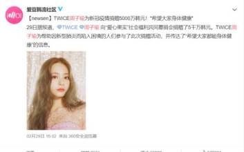 대만 출신 쯔위, 한국 '코로나19' 기부하자 중국 네티즌 '비난'
