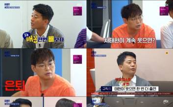 개그맨 김준호와 박영진이 차태현을 웃겼다. 26일 방송된 JTBC ‘장르만 코미디’에서 김준호는 특별 출연한 절친 차태현을 웃기기 위해 박영진을 비롯한 개그맨 후배들과 함께 사극 콩트 ‘웃으면 좀비, 킹덤’을 펼쳤다. 이날 개그맨 후배들을 대기실에 모은 김준호는 화가 난 얼굴로 “‘콘텐츠 거래소에 차태현을 섭외해놨다. 그런데 PD에게 ’아무거나 하라. 어차피 아무도 안 보는데 뭐‘라고 문자를 보냈더라”라고 폭로했다. 이어 “새 코너를 짜봤다. 요놈 배꼽 한번 빼보자. 못 웃기면 그만두는 거다”라고 은퇴까지 언급하며 결의를 다졌다. 김준호는 “사극을 짜봤다. 웃으면 좀비이고, 웃으면 때리는 거다”라고 말했고, 박영진은 “때릴 수 있는 명분을 만들었다”며 찬성하면서도 “그놈의 좀비 지겹다. 이 형, 최근에 웃긴 게 ’바보 삼대‘ 때다”라고 20년 전 코너를 소환했다. 이에 김준호는 “내가 대상 수상자다”라며 자부심을 드러냈고, 결국 두 사람은 차태현을 못 웃기면 귀싸대기 맞기 대결을 성사시켰다. 대기실에서 차태현을 만난 김준호는 시청률 언급에 당황하면서도 “세 번 박장대소하면 한 번 더 출연하고, 여섯 번 박장대소 하면 고정으로 출연하던가, 친한 배우를 출연시킬 것”이라고 제안했다. 이에 차태현은 “그럼 김기방을 출연시키자”고 말했지만 김준호는 달갑지 않은 표정으로 조인성과 황정민의 출연을 언급해 큰 웃음을 안겼다. 사극 콩트를 시작한 김준호와 박영진은 삼행시를 통해 차태현을 폭소케 했다. 또한 개그맨 후배들을 비롯 ’찰리의 콘텐츠 제작소‘에서 활약한 유튜버들과 합을 이루며 결국 여섯 번이 넘는 박장대소를 이끌어 냈다. 하지만 웃음 사냥 대성공에도 불구하고 결국 마지막 벌칙은 김준호가 직접 박을 맞으며 대선배의 훈훈함까지 뽐냈다. '장르만 코미디‘는 매주 토요일 오후 7시 40분에 방송된다. 황지영기자 hwang.jeeyoung@jtbc.co.kr 2020.09.27 15:19
