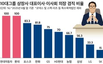 대표이사·이사회 의장 겸직 비중 '현대차와 롯데그룹 100%'