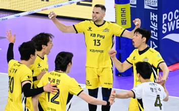 KB손해보험은 2-2에서 나경복이 직선 오픈 공격, 5-4에서 비예나가 퀵오픈으로 득점하며 리드를 이어갔다. 나경복은 4-4에서 서버로 나서 3연속으로 강서브를 때려 상대 리시브를 흔들었다. 차영석이 이준의 오픈 공격을 블로킹하며 3점 앞선 채 먼저 8점을 올린 KB손해보험은 코트 위치를 바꾼 뒤에도 2~3점 차 리드를 유지했다. 13-10에서 황경민이 백어택 공격을 성공하며 매치 포인트를 만들었고, 비예나가 경기를 마무리 하는 득점을 하며 대역전승에 종지부를 찍었다. 한편 KOVO는 29일 오전 전남 무안국제공항에서 발생한 여객기 활주로 이탈 사고와 관련해 대한항공-KB손해보험전 시작을 앞두고 묵념을 진행해 희생자들을 추모했다. 인천=안희수 기자