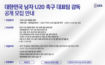축구협회, U-20 남자 대표팀 감독 공개 채용