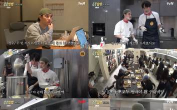 배우 이광수와 도경수의 찰떡 호흡으로 구내식당 2일 차를 성공적으로 마무리했다.23일 방송된 tvN 예능프로그램 ‘콩 심은 데 콩 나고 밥 먹으면 밥심 난다’(이하 ‘콩콩밥밥’)에서는 한국식 아부라소바로 사우들의 취향을 저격하며 구내식당에 완벽하게 적응하는 이광수, 도경수의 모습이 그려졌다.이날 이광수와 도경수는 출근하자마자 리뷰를 확인한 뒤 전날 정했던 메뉴 작명에 심혈을 기울였다. 이 과정에서 두 사람은 ‘특제 녹진 비빔면’, ‘브륄레 감자’ 등의 요리명을 지으며 변함없는 티격태격 케미를 보여줬다.이어 본격적으로 식사 준비에 돌입한 도경수는 한국인 입맛에 딱 맞춘 ‘특제 녹진 비빔면’에 들어갈 고명을 준비했다. 고기, 양파, 쪽파를 비롯해 총 7가지나 되는 고명을 정성 가득 만들었고 수란으로 화룡점정을 찍었다.깨알 웃음도 선사했다. 이광수는 도경수에게 모든 스태프의 시선이 집중되자 자신을 찍는 스태프를 향해 “(도경수에게) 가시라고요”라며 서운함을 드러내는가 하면, 계속되는 도경수에 잔소리에 “계약 때문에 같이하고 있는데 이번 주까지만”이라고 받아쳐 웃음을 안겼다.배식이 시작된 완벽한 역할 분담으로 콤비 플레이를 펼치며 다시 한 번 찰떡 호흡을 보여줬다. 이후 사우들의 반응을 돌아다니며 살피던 도경수는 “왜 수란을 넣은 거냐”는 질문에 생면이 아니라서 촉촉한 수란의 질감을 활용했다고 답해 놀라움을 안겼다.정신없이 점심 배식을 끝낸 두 사람은 곧바로 감자 달걀샌드위치 배달에 나섰다. ‘뿅뿅 지구오락실’ 제작진에게 배달을 간 이들은 알바생 영입 조건을 걸고 K팝 음악 맞추기 게임에 참여했다. 예상과 달리 아이돌 출신 도경수가 고전을 거듭하자 이광수가 “진짜 못 한다”라며 격한 반응을 보여 폭소를 안겼다.이에 도경수는 자신에게 화내던 이광수를 보고 “못 맞추기만 해”라며 참여를 부추겼다. 치열한 대결 끝에 이광수가 승리하며 결국 제작진 중 한 명을 알바생으로 구인하는 데 성공, 기분 좋게 저녁 준비에 착수했다.한편 이날 방송 말미에는 이영지가 남다른 텐션을 자랑하며 구내식당 알바생으로 합류해 눈길을 끌었다. 뿐만 아니라 김우빈의 등장을 예고해 기대감을 높였다.한편 ‘콩콩밥밥’은 매주 목요일 오후 8시 40분에 방송되며, 매주 금요일 오후 6시 유튜브 '채널십오야'를 통해 풀버전이 공개된다. 장주연 기자 jang3@edaily.co.kr