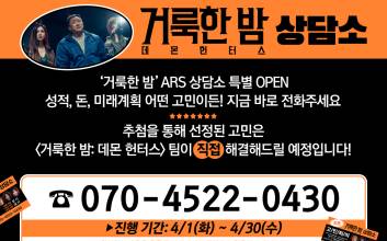 ‘거룩한 밤: 데몬 헌터스’가 예비 관객들의 고민 해결에 나선다.배급사 롯데엔터테인먼트는 영화 ‘거룩한 밤: 데몬 헌터스’(이하 ‘거룩한 밤’)의 ARS 상담소를 오픈했다고 4일 밝혔다.이번 ARS 상담소는 ‘거룩한 밤’ 프로모션 일환으로, 공개된 번호로 전화를 건 후 마동석, 서현, 이다윗 중 한 명을 선택, 고민 내용을 남기면 된다. 상담에 참여한 후 통화 내역 혹은 인증 문자를 캡쳐해 해시태그 ‘#거룩한밤_데몬헌터스 #거룩한밤_ARS상담’과 함께 개인 SNS에 업로드하면 추첨을 통해 특별한 경품을 받을 수 있다.ARS 상담소는 오는 1일부터 30일까지 운영된다.한편 ‘거룩한 밤’은 악을 숭배하는 집단에 의해 혼란에 빠진 도시, 특별한 능력을 가진 어둠의 해결사 ‘거룩한 밤’ 팀 바우(마동석), 샤론(서현), 김군(이다윗)이 악의 무리를 처단하는 오컬트 액션물이다. 오는 30일 개봉.장주연 기자 jang3@edaily.co.kr