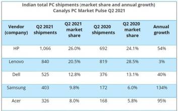 삼성, 인도 PC 시장점유율 두 자릿 수 코앞…"원격 전환 혜택"