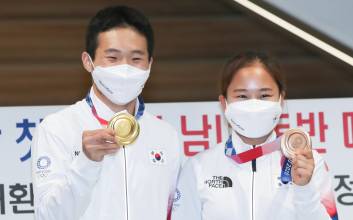 2020 도쿄올림픽에서 '도마황제'로 거듭난 신재환(23·제천시청)이 억대 포상금 질문에 솔직한 답변을 내놨다. 신재환은 도쿄올림픽 일정을 마무리하고 3일 오후 인천국제공항을 통해 귀국했다. 수많은 취재진에 둘러싸인 신재환은 "지금은 (금메달이) 실감 나는 것 같다"며 "비행기에서 내렸을 때 빨리 집에 가고 싶다는 생각뿐이었는데, 이렇게 나와서 사진도 찍고 환영해주시니까 기분이 좋다"고 말했다. 신재환은 마중 나온 아버지를 꼭 껴안았다. 그는 "울컥했다"며 "항상 모자라고 철없고 많이 잘 못해 드린 아들이지만 이번 기회를 통해서 더더욱 효도하는 아들이 되도록 노력하겠다"고 다짐했다. 신재환은 2일 일본 도쿄 아리아케 체조경기장에서 열린 도쿄올림픽 남자 기계체조 도마 결선에서 1·2차 시기 평균 14.783점으로 1위를 차지했다. 러시아올림픽위원회(ROC)의 데니스 아블랴진과 평균 점수가 같았지만 타이브레이커 규정에 의해 신재환이 금메달의 주인이 됐다. 대한체조협회 회장사를 맡은 포스코그룹으로부터 2억원의 포상금을 받게 된 신재환은 "일단 집에 빚이 좀 있어서 그걸 좀 청산하고 나머지는 저축하겠다"며 말했다. 신재환은 결선에서 기량을 발휘한 비결로 여서정의 응원을 꼽기도 했다. 그는 "(여)서정이가 '오빠 꼭 잘해'라고 하길래 서정이에게 (올림픽 메달의) 기를 좀 달라고 했고, 서정이와 주먹을 부딪치며 기를 받았다. 아마 그게 결선에서 70% 이상 정도의 심적 안정을 주지 않았나 생각한다"고 밝혔다. 홍수민 기자 sumin@joongang.co.kr 2021.08.04 09:04