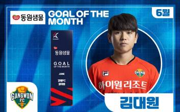 전북 현대 전진우가 2025시즌 5월 K리그 ‘안심을 마시다 동원샘물 이달의 골’을 수상했다. K리그 5월의 선수상까지 차지한 그는 본인이 왜 대세인지를 증명했다.동원F&B가 후원하는 ‘안심을 마시다 동원샘물 이달의 골'은 매월 가장 인상 깊은 득점을 터뜨린 선수에게 수여하는 상이다. 두 명의 후보를 대상으로 K리그 멤버십 어플리케이션 ’Kick’을 통한 팬 투표를 진행해 수상자를 결정한다. 투표는 가입자당 기간 내 1일 1회씩, 총 3회 참여할 수 있다.5월 ‘이달의 골’은 K리그1 11~17라운드 경기를 대상으로 했고, 후보는 전북 전진우와 포항 스틸러스 이호재였다.전진우는 16라운드 대구전에서 후반 20분 날카로운 돌파로 상대 수비를 무너뜨린 후 강력한 오른발 슛을 성공시키며 상대 골문을 갈랐다. 이호재는 13라운드 수원FC전에서 후반 시작 직후 강력한 터닝슛을 꽂아 넣으며 5월 이달의 골 후보에 올랐다.‘Kick’ 팬 투표는 이번 달 11일(수)부터 13일(금)까지 3일간 실시했다. 그 결과 전진우가 6614표(80%)를 받아 1700표(20%)를 받은 이호재를 제치고 ‘5월 이달의 골’을 차지했다. 전진우에게는 상금 100만 원과 함께 트로피가 주어진다. 연맹은 올 시즌부터 이달의 골 수상자의 친필 사인을 받은 레플리카 트로피를 제작해 기부 경매를 진행하고 있다.동원F&B의 먹는샘물 브랜드 동원샘물은 경기도 연천군, 충북 괴산군, 전북 완주군 등의 청정지역 심층 암반수를 취수해 천연 미네랄이 풍부한 친환경 생수다. 동원F&B는 자체 캐릭터인 ‘건강수’를 통해 SNS에서 MZ세대와 소통하고 있으며 공병 경량화, 무라벨 도입 등 친환경 요소를 강화하는 ESG 경영에도 앞장서고 있다.김희웅 기자