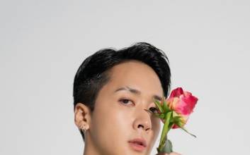 라비, 장미꽃 입에 물고 지그시 감은 눈