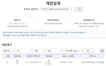 주중 챔피언스리그 경기 대상 프로토 승부식 131회차, 게임 발매 개시