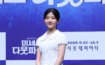 배우 김다현이 2일 오후 서울 서대문구 이화여자대학교 삼성홀에서 열린 뮤지컬 '미세스 다웃파이어' 제작발표회에 참석해 포토타임을 갖고 있다.