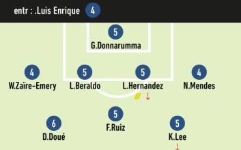 루이스 엔리케 감독은 경기 뒤 “이강인이 정강이에 타박상을 입었지만, 심각하지는 않다”고 말했다.하지만 프랑스 매체 레퀴프는 “(이강인은) 경기가 끝나고 절뚝이며 메노 스타디움을 떠났다. 이강인은 아스널과 UCL 준결승 2차전 출전 가능성이 작아 보인다”고 내다봤다.스트라스부르를 상대한 이강인의 몸놀림은 가벼웠다. 전반 3분 왼쪽 측면을 돌파한 이강인이 크로스를 올렸고, 문전으로 쇄도하던 곤살루 하무스가 머리에 맞힌 볼이 골대를 살짝 벗어났다.전반 6분에는 이강인이 골 지역 왼쪽 구석으로 파고들어 컷백을 내줬고, 세니 마율루가 왼발 슈팅을 때린 게 상대 수비수에게 막혔다. 이강인은 동료들에게 양질의 기회를 제공하며 공격포인트 적립 기회를 노렸다.그러나 PSG는 자책골을 내주며 끌려갔다. 전반 20분 스트라스부르의 코너킥 상황에서 볼이 PSG 수비수 루카스 에르난데스 몸에 맞고 골문으로 들어가면서 자책골이 됐다.