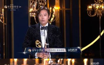 배우 이병헌이 ‘제44회 청룡영화상’ 남우주연상의 주인공이 됐다.‘제44회 청룡영화상’이 24일 오후 서울시 영등포구 KBS홀에서 개최됐다. 김혜수, 유연석이 MC를 맡았다.남우주연상 후보에는 ‘더 문’ 도경수, ‘올빼미’ 류준열, ‘거미집’ 송강호, ‘달짝지근해: 7510’ 유해진, ‘콘크리트 유토피아’ 이병헌이 이름을 올렸다.이날 이병헌은 “‘콘크리트 유토피아’를 만들어준 엄태화 감독님의 수상을 축하하고 감사하다. 한여름에 고생 많았던 스태프들과 열연을 펼친 김선영, 박보영, 박서준을 비롯한 많은 배우에게 감사하다”며 소감을 밝혔다.이어 “영화를 하는 사람이라면 ‘청룡영화상’은 한 번쯤 받아보고 싶은 상이다. 권위 있고 공정한 시상식이라고 생각하는 데 내 손에 트로피가 들려있는 것을 보니까 정말 공정하다는 생각이 든다”며 너스레를 떨었다.그러면서 “다음 달에 둘째가 태어난다. 태명을 ‘버디’라고 지었다”며 “집에서 지켜보고 있을 이민정과 ‘버디’, 모두와 영광을 함께 하겠다. 나이스 버디”라고 외쳤다.이세빈 기자 sebi0525@edaily.co.kr