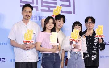 아카펠라 그룹 메이트리가 5일 오후 서울 용산구 용산CGV아이파크몰에서 열린 영화 '빅토리' VIP시사회에서 포즈를 취하고 있다. '빅토리'는 오직 열정만큼은 충만한 생판 초짜 치어리딩 동아리 '밀레니엄 걸즈'가 신나는 댄스와 가요로 모두를 응원하는 이야기를 담은 영화. 오는 14일 개봉. 서병수 기자 qudtn@edaily.co.kr /2024.08.05/ 2024.08.05 20:50