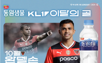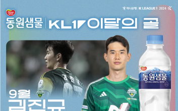 전북 현대 전진우가 2025시즌 5월 K리그 ‘안심을 마시다 동원샘물 이달의 골’을 수상했다. K리그 5월의 선수상까지 차지한 그는 본인이 왜 대세인지를 증명했다.동원F&B가 후원하는 ‘안심을 마시다 동원샘물 이달의 골'은 매월 가장 인상 깊은 득점을 터뜨린 선수에게 수여하는 상이다. 두 명의 후보를 대상으로 K리그 멤버십 어플리케이션 ’Kick’을 통한 팬 투표를 진행해 수상자를 결정한다. 투표는 가입자당 기간 내 1일 1회씩, 총 3회 참여할 수 있다.5월 ‘이달의 골’은 K리그1 11~17라운드 경기를 대상으로 했고, 후보는 전북 전진우와 포항 스틸러스 이호재였다.전진우는 16라운드 대구전에서 후반 20분 날카로운 돌파로 상대 수비를 무너뜨린 후 강력한 오른발 슛을 성공시키며 상대 골문을 갈랐다. 이호재는 13라운드 수원FC전에서 후반 시작 직후 강력한 터닝슛을 꽂아 넣으며 5월 이달의 골 후보에 올랐다.‘Kick’ 팬 투표는 이번 달 11일(수)부터 13일(금)까지 3일간 실시했다. 그 결과 전진우가 6614표(80%)를 받아 1700표(20%)를 받은 이호재를 제치고 ‘5월 이달의 골’을 차지했다. 전진우에게는 상금 100만 원과 함께 트로피가 주어진다. 연맹은 올 시즌부터 이달의 골 수상자의 친필 사인을 받은 레플리카 트로피를 제작해 기부 경매를 진행하고 있다.동원F&B의 먹는샘물 브랜드 동원샘물은 경기도 연천군, 충북 괴산군, 전북 완주군 등의 청정지역 심층 암반수를 취수해 천연 미네랄이 풍부한 친환경 생수다. 동원F&B는 자체 캐릭터인 ‘건강수’를 통해 SNS에서 MZ세대와 소통하고 있으며 공병 경량화, 무라벨 도입 등 친환경 요소를 강화하는 ESG 경영에도 앞장서고 있다.김희웅 기자