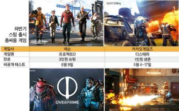 올해 하반기 총싸움(슈팅) 게임 시장이 후끈 달아오를 전망이다. 게임사들이 최근 출시를 앞둔 신작 총싸움 게임의 테스트를 진행하며 막바지 담금질을 하고 있다. 이들 신작은 정통 슈팅 게임부터 생존, 진지점령(MOBA) 등으로 차별화한 작품까지 다양하며, 대부분 글로벌 PC 게임 플랫폼 스팀을 통해 국내뿐 아니라 해외 시장을 동시에 공략할 계획이다. 과연 누가 기존 강자들이 오랫동안 장악하고 있는 총싸움 게임 시장을 흔들지 주목된다. 건 슈팅 손맛 집중한 ‘프로젝트D’ ‘디스테라’ 최근 신작 총싸움 게임의 테스트나 쇼케이드 등을 진행하며 유저와 적극 소통하고 있는 게임사는 넥슨·카카오게임즈·넷마블·데브시스터즈 등이다. 넥슨은 '프로젝트D', 카카오게임즈는 '디스테라', 넷마블은 '오버프라임', 데브시스터즈는 ‘데드사이드클럽’을 올해 하반기 출시를 목표로 개발 속도를 올리고 있다. 이들 신작은 총싸움 게임이지만 자신만의 차별점을 확실히 갖고 있다. 넥슨의 자회사인 넥슨게임즈가 개발하고 있는 프로젝트D는 총을 쏘는 손맛에 충실한 3인칭 정통 슈팅 게임이다. 유저는 시시각각 변하는 전투 환경에서 개성있는 9명의 요원을 조합해 5대 5로 나뉘어 싸운다. 목표 지점에 폭탄을 터트리거나 해제하는 폭파 미션을 수행하게 된다. 게임에서 얻은 재화로 팀 전술용 특수 아이템·무기를 구매하는 상점, 승부에 다양한 변수를 만드는 캐릭터별 고유 스킬과 사실적인 전투 액션 등 전략적 플레이 요소도 갖췄다. 프로젝트D는 오랫동안 총싸움 게임 왕좌를 유지하고 있는 넥슨게임즈의 서든어택의 최신판 같은 느낌을 주기도 한다. 넥슨은 지난 12월 알파 테스트 이후 매달 마지막 금요일에 라이브 방송으로 개발 현황, 신규 콘텐트를 공개하는 온라인 쇼케이스 ‘D-DAY’를 개최하고 있다. 지난달 30일 네 번째 쇼케이스에서는 오는 6월 9일 글로벌 테스트를 진행하고, 이달 26일부터 사전예약을 시작한다는 소식을 알렸다. 카카오게임즈가 투자한 리얼리티매직이 개발 중인 디스테라도 건 슈팅의 맛에 집중한 총싸움 게임이다. 정통 슈팅 게임과 다른 점은 파괴된 미래 지구에서 다양한 SF 무기를 제작·사용하고, 빠른 성장으로 마지막까지 살아남는 것이 목표인 생존 FPS 게임이라는 점이다. 여기에 거점 공략과 점령을 통해 인공적으로 기후를 조정하거나 지진을 발생시키는 등 다양한 오브젝트와 상호 작용으로 생존 우위를 점할 수 있는 것도 특징이다. 디스테라는 작년 3월 알파 테스트를 시작으로 7월과 11월에 글로벌 베타 테스트를 진행했고, 오는 4일부터 17일까지 2주간 새로운 글로벌 베타 테스트를 진행할 예정이다. 개발팀은 그간 유저의 피드백을 바탕으로 타격감을 개선하고 UI 편의성을 높였으며, 모션 캡처로 개선된 AI 애니메이션 등 한층 향상된 게임성을 선보인다는 계획이다. MOBA 혼합 ‘오버프라임’…사이드스크롤 ‘데드사이드클럽’ 넷마블의 자회사 넷마블에프앤씨가 만들고 있는 ‘오버프라임’은 앞서 두 신작과 달리 3인칭 슈팅(TPS)과 진지점령(MOBA) 장르가 혼합된 PC 게임이다. 유저는 독특한 스킬을 가진 6개 영웅 중 하나를 선택, 5대 5로 편을 나눠 상대편 기지를 파괴하고 점령하면 된다. 맵에는 전장으로 빠르게 이동할 수 있는 '점프 패드', 은신할 수 있는 '그림자 연못', AI(인공지능) NPC '티언' 등 다양한 오브젝트가 존재하며, 이를 활용해 각종 전략과 역전을 만들어낼 수 있다. 오버프라임은 넷마블이 모바일 게임사로 변신한 이후 처음으로 내놓는 PC 게임이기도 하다. 이에 회사는 더 많은 유저가 경험할 수 있도록 저사양 PC에서도 안정적 플레이가 가능하도록 최적화 작업에 집중하고 있다. 넷마블은 오버프라임의 2차 비공개 테스트를 인원수 제한없이 오는 9일까지 스팀에서 진행한다. 데브시스터즈의 개발 자회사 프레스에이가 개발 중인 ‘데드사이드클럽’은 도심 속 빌딩에서 전투를 벌이는 심리전 기반의 총싸움 게임이다. 유저는 단순히 상대를 맞추는 총격 액션을 넘어 은폐와 방어, 기습공격을 결합한 수 싸움을 벌이게 된다. 잘 쏘고 잘 맞추는 에임 피지컬보다는 순간적인 판단력과 심리전이 중심이다. 또 1·3인칭 형태에서 탈피한 사이드스크롤(횡스크롤) 액션을 경험할 수 있다. 사이드스크롤 게임은 PvE(유저와 AI 대결)가 중심이지만 이 게임은 PvP(유저 간 대결)가 전투 시스템의 핵심 콘텐트다. 유저는 직접 게임 룰과 상금을 설정한 대회를 개최하거나 맵을 창작하는 등 주체적으로 게임의 재미를 확장할 수도 있다. 데브시스터즈는 올해 선보일 첫 번째 신작이기도 한 데드사이드클럽의 비공개 테스트를 지난달 말 진행하고, 3일 미디어 간담회를 열어 그 결과를 공개한다. 이처럼 게임사들의 신작은 총싸움 게임이지만 다른 개성을 지녔다. 넷마블 관계자는 “과거에는 타격감, 빠른 액션에 중점을 둔 순수 슈팅 게임이 많았지만, 이제는 전략성, RPG 요소 등이 결합된 슈팅 게임들이 많이 나오고 있다”고 말했다. 그는 또 “이용자들이 다양한 게임을 접하면서 각종 장르에 대한 이해도가 높아졌고, 이에 따라 게임 개발에도 장르를 혼합하는 등 복합적인 재