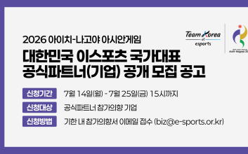 e스포츠협회, 2026 아이치·나고야 아시안게임 공식 파트너사 모집