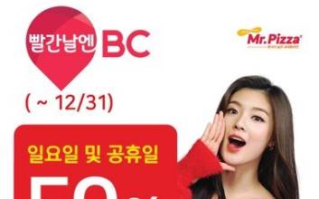 미스터피자, 공휴일 BC카드로 결제하면 50% 할인