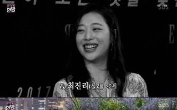설리의 생전 모습이 공개됐다. 15일 방송된 SBS '본격연예 한밤'에서는 사망 9일 전 영화 '메기' GV에 참석한 설리의 모습이 공개됐다. 설리는 이 자리에서 "저는 사람을 잘 믿는 편이다. 그런데 요즘 세상은 누굴 믿기 힘들다. 저는 사람을 너무 잘 믿어서, 이 영화를 보고 나서 조금 더 의심을 해보는 것이 맞겠다는 생각이 들었다"고 말했다. 대중 앞에서 언제나 그랬듯 환히 웃는 모습이었다. 설리의 비보를 전하며 '본격연예 한밤'의 MC, 박선영 아나운서는 "그간 웃는 모습을 많이 봐서 밝은 줄 알았는데, 속상하다"며 눈물을 보였다. 한편, 설리는 지난 14일 경기도 성남시 자택에서 세상을 떠났다. 소속사 SM엔터테인먼트는 '너무나 슬프고 안타까운 소식을 전하게 되어 죄송하다. 설리가 우리 곁을 떠났다. 지금의 상황이 너무나도 믿기지 않고 비통할 따름이다. 갑작스러운 비보로 슬픔에 빠진 유가족 분들을 위해 루머 유포나 추측성 기사는 자제해주시길 간곡하게 부탁드리며, 고인의 마지막 가는 길에 깊은 애도를 표한다'는 입장을 밝혔다. 설리는 지난 2009년 에프엑스 멤버로 데뷔했다. 한류 걸그룹으로 활동하며 인기를 모았고, 2015년 팀을 탈퇴한 후에는 배우로 영역을 확장했다. 영화 '패션왕' '리얼' 등에 출연했으며 최근에는 tvN 드라마 '호텔 델루나'에 카메오로 등장했다. JTBC2 '악플의 밤'을 통해 예능프로그램 MC로도 활약 중이었다. 박정선 기자 park.jungsun@jtbc.co.kr