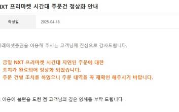 미래에셋증권 대체거래소 넥스트레이드(NXT)의 프리마켓에서 주문 처리가 지연되는 장애가 발생했다가 5시간 만에 복구됐다.미래에셋증권은 18일 공지사항에서 "NXT 프리마켓 시간대 지연된 주문에 대한 조치가 완료됐다"며 "주문 내역을 꼭 재확인하기 바란다"고 전했다.이날 미래에셋증권 프리마켓 개장 직후인 오전 8시께부터 약 10분간 일부 주문 처리가 지연되는 장애가 발생했다. 이후 신규 주문은 정상 처리됐지만 오류를 겪은 고객들은 서비스가 정상화될 때까지 반나절 가까이 불편을 겪었다.미래에셋증권은 사고 원인을 파악 중이며 피해에 대한 보상을 검토하는 것으로 알려졌다.정길준 기자 kjkj@edaily.co.kr 2025.04.18 14:58