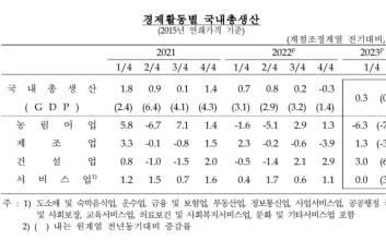 코로나19 사회적 거리두기 종료 이후 민간 소비가 늘면서 1분기(1∼3월) 한국 경제가 두 분기 연속 역성장을 피해 0.3% 성장했다.한국은행은 올해 1분기 실질 국내총생산(GDP) 성장률(잠정치·전분기 대비)이 0.3%로 집계됐다고 2일 발표했다. 앞서 4월 25일 발표된 속보치와 같다.분기별 성장률은 코로나19 발생과 함께 2020년 1분기(-1.3%)와 2분기(-3.0%)에 마이너스(-)를 기록했지만 이후 3분기(2.3%)·4분기(1.2%), 2021년 1분기(1.7%)·2분기(0.8%)·3분기(0.2%)·4분기(1.3%), 지난해 1분기(0.6%)·2분기(0.7%)·3분기(0.3%)까지 9개 분기 연속 성장세를 유지했다.하지만 수출 급감과 함께 직전 분기인 지난해 4분기(-0.4%) 다시 마이너스로 돌아섰고, 올해 1분기 소비에 의지해 힘겹게 반등했다. 1분기 성장률을 부문별로 보면, 민간소비가 오락·문화, 음식·숙박 등 서비스를 중심으로 0.6% 증가했다. 건설투자도 건물 건설 확대로 1.3% 늘었고, 정부 소비는 사회보장 현물수혜 위주로 0.2% 성장했다.반면 설비투자의 경우 반도체장비 등 기계류 중심으로 5.0%나 감소했다. 수출은 반도체 등의 감소에도 운송장비 등의 호조로 4.5% 증가했다. 수입 증가율(4.2%)은 수출보다 낮았다. 속보치와 비교하면 건설투자가 1.1%p 높아졌고, 민간소비·정부소비도 0.1%p씩 상향조정됐다.하지만 설비투자의 경우 -4.0%에서 -5.0%로 1.0%p나 더 떨어졌다. 1분기 성장률에 대한 민간소비의 기여도는 0.3%p로 분석됐다. 그만큼 민간소비가 1분기 성장률을 높였다는 뜻이다. 반대로 순수출은 성장률을 0.2%p 끌어내렸다. 최근 무역수지 적자 상황이 결국 경제 성장에도 타격을 준 셈이다.업종별로는 운송장비·1차금속제품 등이 늘면서 제조업이 1.3% 증가했고, 건설업도 3.0% 늘었다.하지만 서비스업의 경우 의료·보건·사회복지(2.9%) 등의 성장에도 운수업(-3.9%) 등이 줄어 성장 없이 작년 4분기 수준에 머물렀다.1분기 명목 국민총소득(GNI)은 직전 분기보다 2.7% 늘었다. 명목 국외순수취요소소득이 9조8000억원에서 19조3000억원으로 크게 늘어 명목 GDP 성장률(1.0%)을 웃돌았다.실질 GNI도 1.9% 증가했다. 역시 실질 국외순수취요소소득이 8조1000억원에서 14조9000억원으로 증가하면서 실질 GDP 성장률(0.3%)보다 높았다.총저축률(33.4%)은 0.7%p 올랐다. 국민총처분가능소득 증가율(2.6%)이 최종소비지출 증가율(1.5%)보다 높았기 때문이다.아울러 이날 발표된 '2022년 국민계정(잠정치)'에 따르면, 지난해 실질 GDP는 2.6% 성장했다.명목 GDP(2162조원)도 3.9% 늘었고, 1인당 국민총소득(GNI)는 3만2886달러(한화 4249만원)로 집계됐다. 지난 3월 7일 처음 한은이 공개한 3만2661달러보다 225달러 늘었다.서지영 기자 seojy@edaily.co.kr