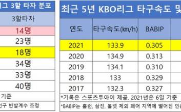 공교롭게도 연내 2차 공인구 수시검사에선 반발계수가 일제히 내려갔다. A 구단 운영팀 관계자는 "KBO가 의도한 결과가 아니라고 해도 반발계수가 하향 조정됐으니, 경기력에는 직접적인 영향이 불가피할 거다. (공인구를 검사한) 4월 말부터 홈런을 비롯한 장타가 어느 정도 줄어들지 관심 있게 지켜보고 있다. 반발계수의 변동이 크다"고 말했다.배중현 기자 bjh1025@edaily.co.kr